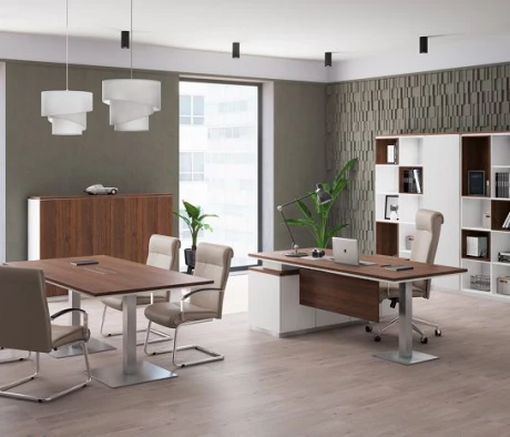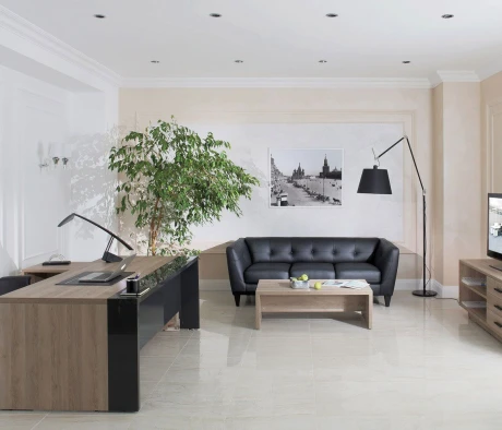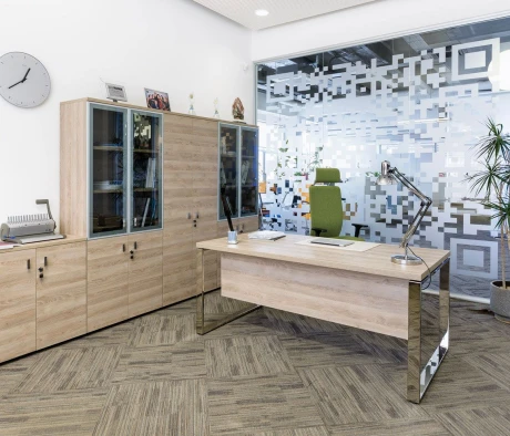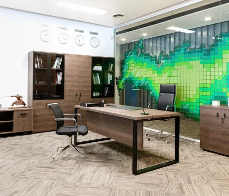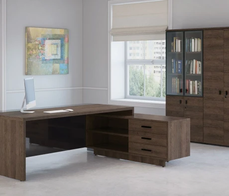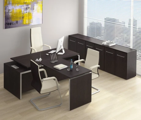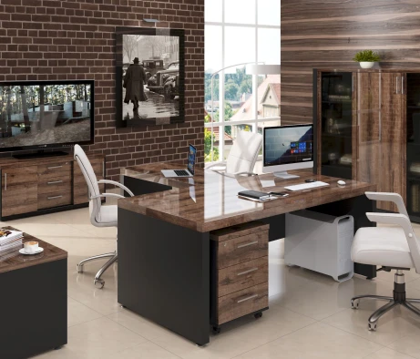 Остановился на этом варианте кабинета руководителя, долго думал какой взять. Наконец то дождались доставку, она была действительно долгой, но ничего, быстро собрали мебель зато. Прежде всего понравилось как мебель гармонирует с интерьером, как будто всю жизнь здесь стояла. Определенно это плюс, к качеству вопросов нет, отечественное производство на высшем уровне, спасибо!