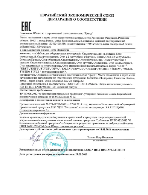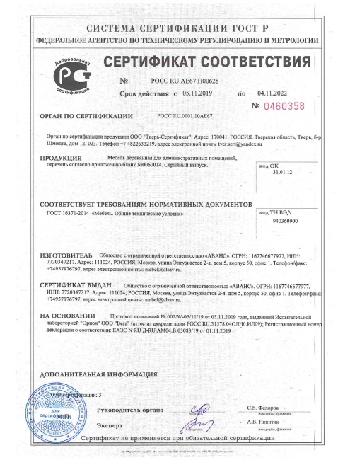 Все наши товары поставляются с гарантией 12 месяцев на все производственные дефекты с момента выдачи гарантийного талона или накладной, исключением являются акустические кабины (24 месяца) и некоторые модели эргономичных кресел (от 2 до 10 лет).