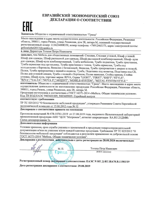 При получении мебели важно убедиться, что купленный Товар полностью укомплектован и не имеет внешних повреждений. При их обнаружении Товар подлежит обмену или возврату.
