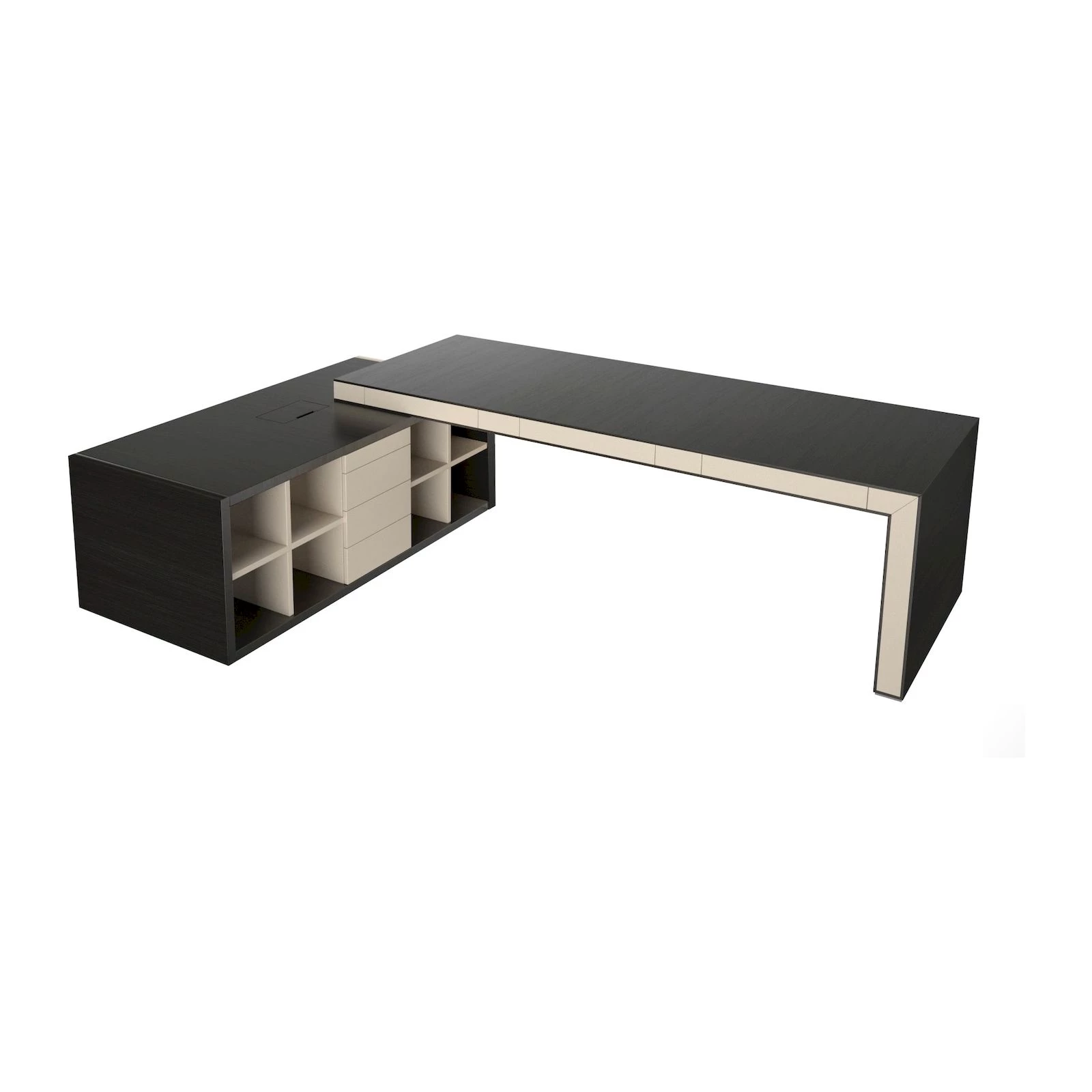 Стол руководителя без передней панели матовый, левый 3075х2355х780 Belesa